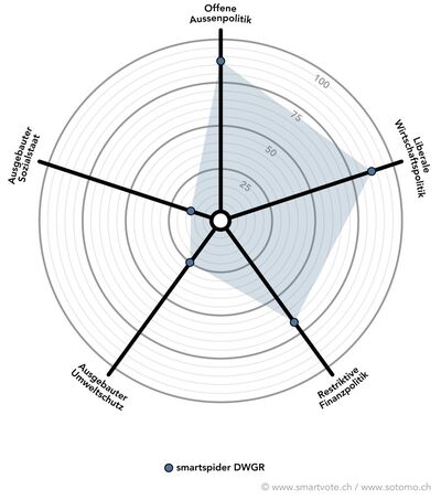 Als DWGR sind Bündner Gewerbeverband, Handelskammer/Arbeitgeberverband Graubünden sowie HotellerieSuisse Graubünden vereinigt. Die DWGR hatten in Zusammenarbeit mit Smartvote eine Wahlhilfe der Wirtschaft erstellt. Wie wirtschaftsfreundlich die Kandidat/innen für die Regierung und für den Grossen Rat waren, ist unter www.dwgr.smartvote.ch ersichtlich. Rund die Hälfte der allgemeinen Smartvote-Fragen floss in die Wahlhilfe der Wirtschaft ein. Die Dachorganisationen sowie Branchenverbände aus dem Tourismus hatten die Smartvote-Fragen in einem mehrstufigen Prozess beantwortet und dadurch die Haltung der Wirtschaft zu den einzelnen Fragen definiert. Die Haltung war auch in einem eigenen Smartvote-Spider mit den Bereichen Wirtschafts-, Finanz- und Aussenpolitik, Sozialstaat und Umweltschutz ersichtlich. Die aktuelle Auswertung zeigte, dass die Kandidaten/innen der bürgerlichen Parteien über zwei Drittel oder mehr Übereistimmung mit der Haltung der Wirtschaft vorwiesen.